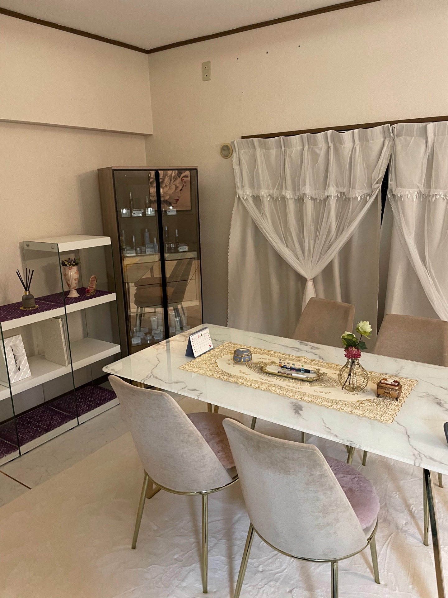 私たちのサロンは、ムダ毛をなくすことだけでなく、美肌と自己肯定感を高めることを大切な理念としています。20〜40代の女性が、仕事や家事、育児の合間にほっと一息つけるような、安心感と清潔感にこだわったプライベート空間をご用意しました。白と淡いベージュを基調とした店内は、やわらかな照明と落ち着いたインテリアで、エステが初めての方でも緊張せずにお過ごしいただけます。